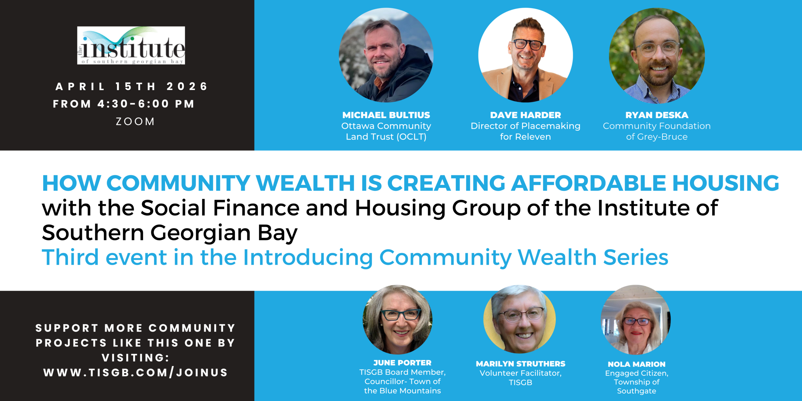 On Wednesday, April 15th, 2026, from 4:30 to 6 pm, The Institute’s Social Financing and Affordable Housing Group hosted its third online event in its 3-part series. The focus of this event was how Community Wealth is now being used by non-profit organizations, charities and housing developers committed to creating affordable housing in our communities. Presenters identified specific strategies communities are using to leverage existing community wealth to create affordable housing.
