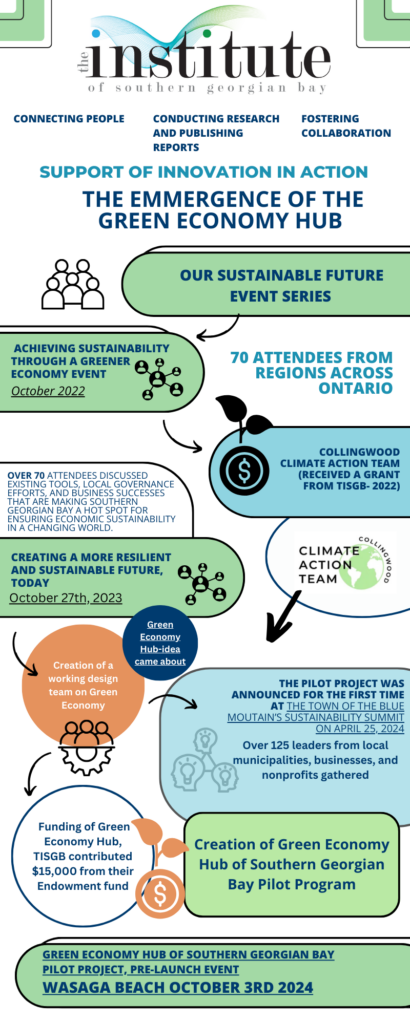 The Institute of Southern Georgian Bay exists to connect people, foster collaboration and conduct research that fuels innovation. With a focus on the early stages of innovation, TISGB looks closely at the roles of innovators and early adopters. Through the development of a regional network we connect and celebrate innovative people. We help to bring them together for opportunities of collaborative exploration.
