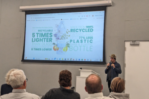 Jeff Young, Supply and Sustainability Manager at Georgian Bay Spirits Co., offered a real-world perspective by walking attendees through his company’s sustainability journey. He also shared how they envision being part of the Green Economy Hub and how it could further their sustainability goals.