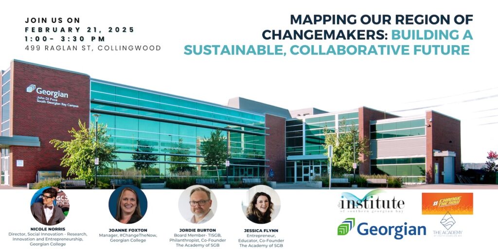 Join The Institute, in collaboration with Georgian College’s Change the Now (#CTN) program and the Academy of South Georgian Bay, for an interactive, hands-on workshop where Changemakers from across Southern Georgian Bay will come together to map out bold pathways for sustainable, inclusive communities.